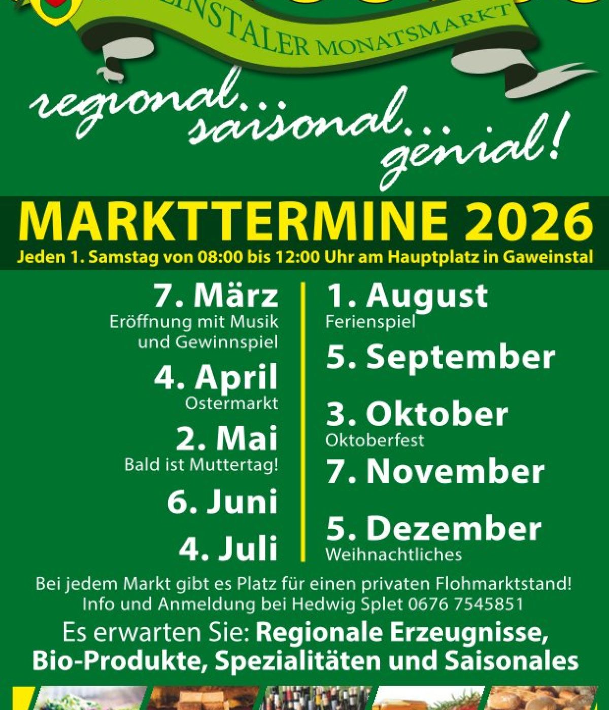 Termine Monatsmarkt am Hauptplatz in Gaweinstal